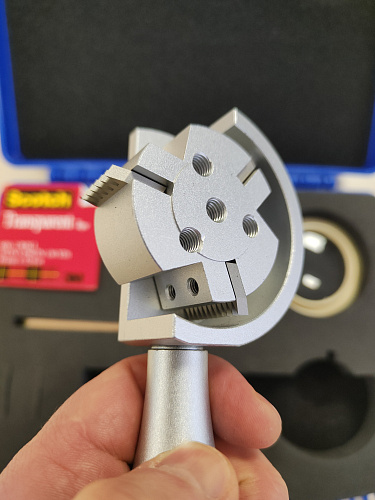 На ролике адгезиметра АВМ РН закреплены 3 резака. Смена резаков производится очень легко и быстро с помощью откручивания фиксатора и вращения ролика.