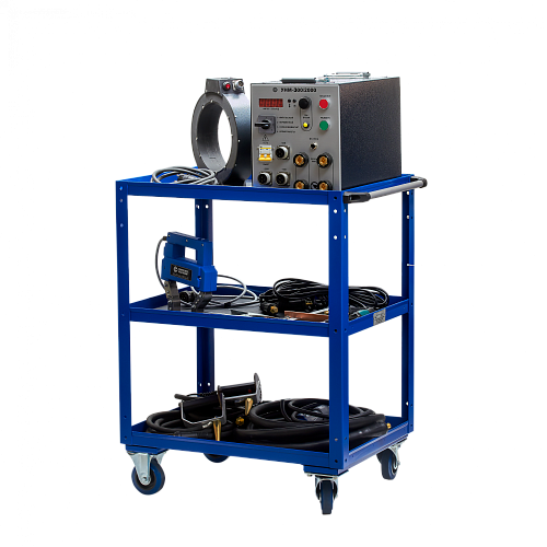 Прибор комплектуется силовыми кабелями, выносными соленоидами и электромагнитом, с помощью которых можно производить продольное или циркулярное намагничивание детали. Для транспортировки технического средства и обнаружения дефектов в полевых условиях предусмотрена тележка. Намагничивание осуществляется переменным, постоянным или импульсным током большой величины, за счет чего достигаются высокие значения напряженности намагничивающего поля.